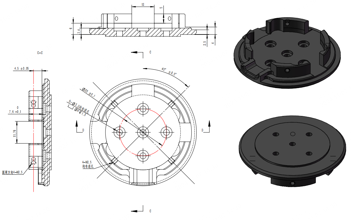 用戶如將OmniPicker接到其他機械臂上,可參考如下安裝接口圖紙自行設計轉接件,并按照3.2 靈犀X1組件作業說明 完成組裝。