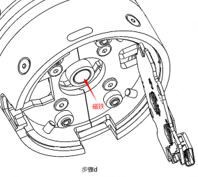 d.將控制板掀起,露出磁鐵,注意掀起過程中控制板的3根焊線不能斷開,如下圖;